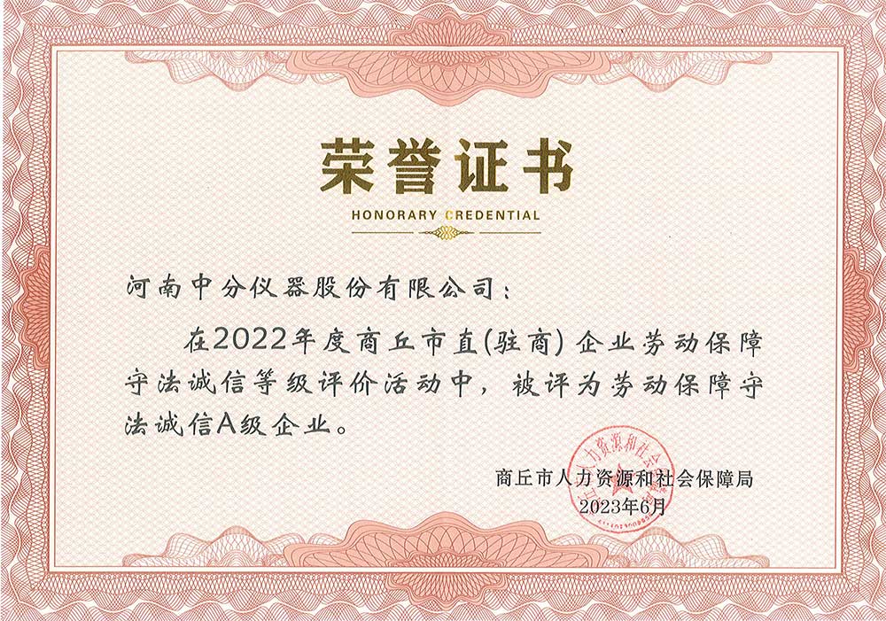 作為行業的知名企業,中分儀器一直將守法合規視為企業發展的基本原則。公司自組建以來,堅持以人為本,著力構建和諧勞動關系,建立健全了內部管理制度和規范化的勞動關系,此次獲得榮譽進一步彰顯了公司在勞動保障和誠信經營方面的突出表現,也體現了政府職能機構對公司的認可與信任。