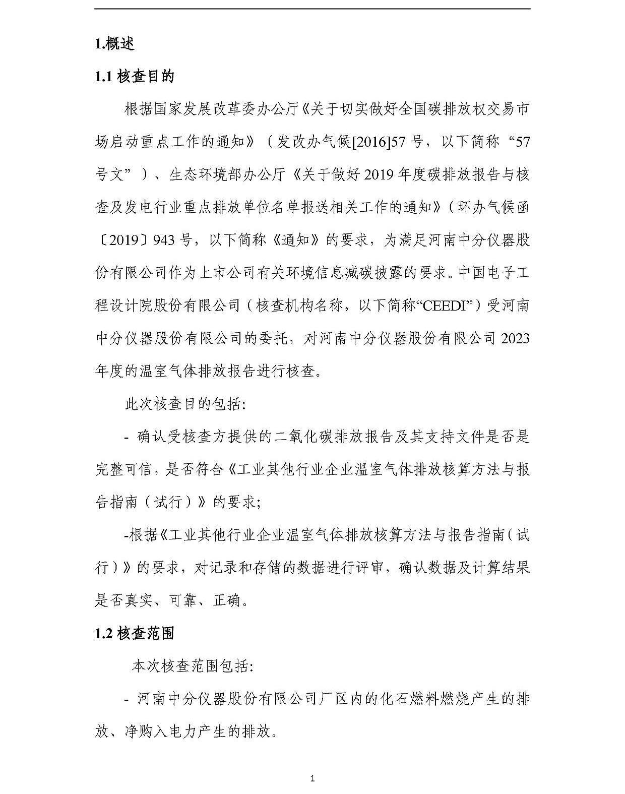 河南中分儀器股份有限公司2023年溫室氣體排放核查報告